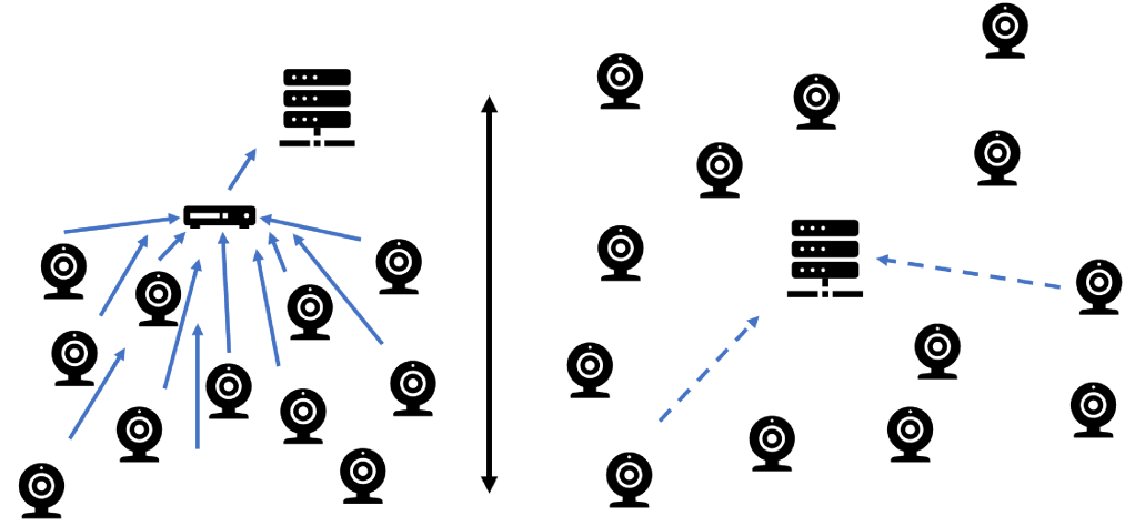 Un ejemplo muy fácil de entender es el de las cámaras de vigilancia. En la «antigüedad» las cámaras corrientes para vigilancia sólo permitían enviar la señal de vídeo a un «grabador», este almacenaba todo el vídeo de las todas las cámaras, empaquetaba de algún modo toda esa cantidad de material y lo enviaba a los servidores que era dónde se analizaba, en caso de que así fuera, para detectar movimiento en las imágenes y descartar vídeos dónde no había ocurrido absolutamente nada.
