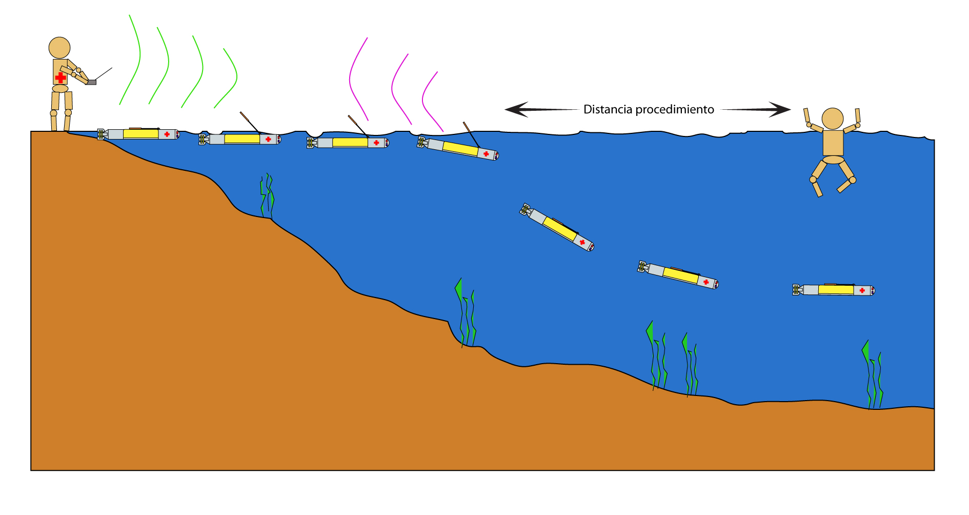 - Mando RF: Dispositivo no representado pero que sirve para una primera orientación y confirmación para el protocolo de salvamiento.